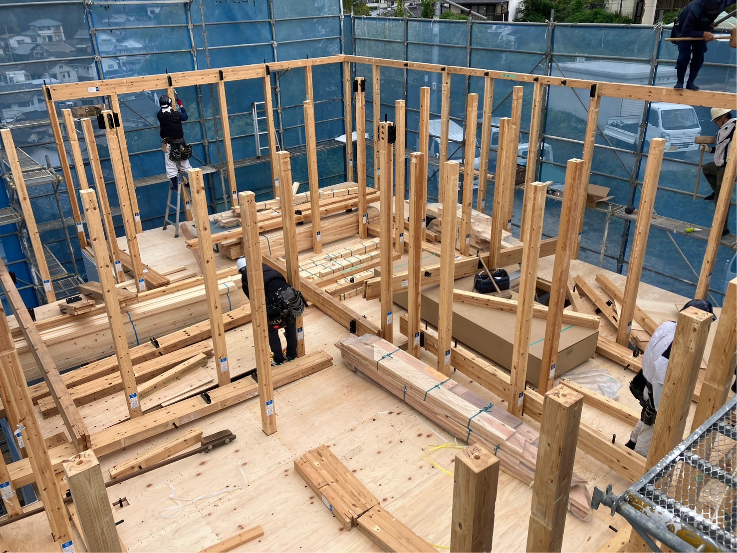 天候を心配していましたが、幸いにも雨もあがり無事上棟をむかえることが出来ました