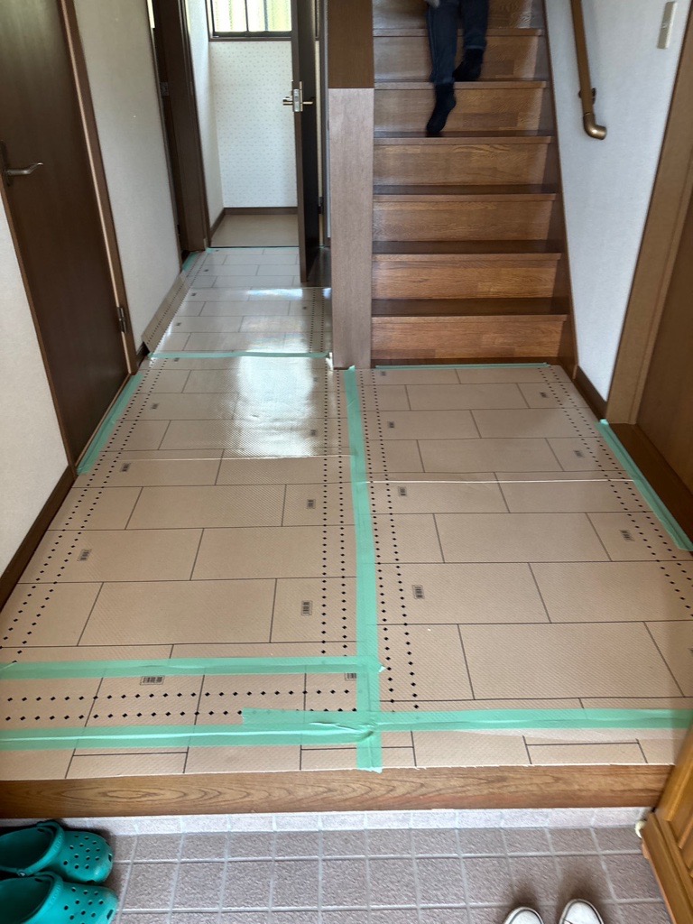 今日は1.2階共に交換をさせて頂いたのですが、ササっと養生をさせて頂いている間に、ちゃっちゃと水道屋さんが2階のトイレを外してくれて。