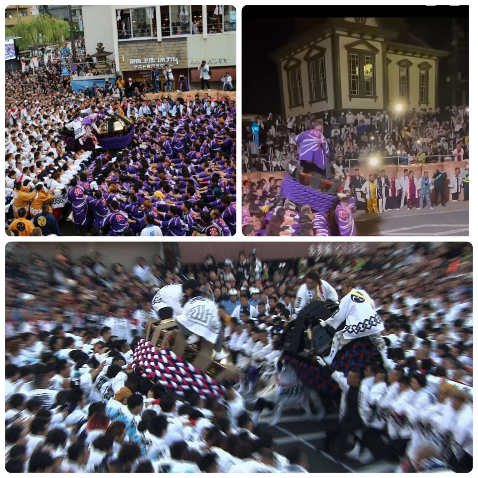 ↓ 地元道後、松山祭りは神輿の鉢合わせ。