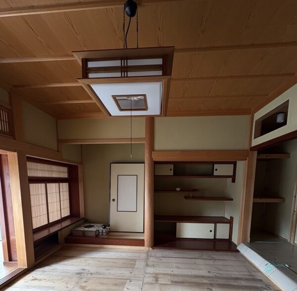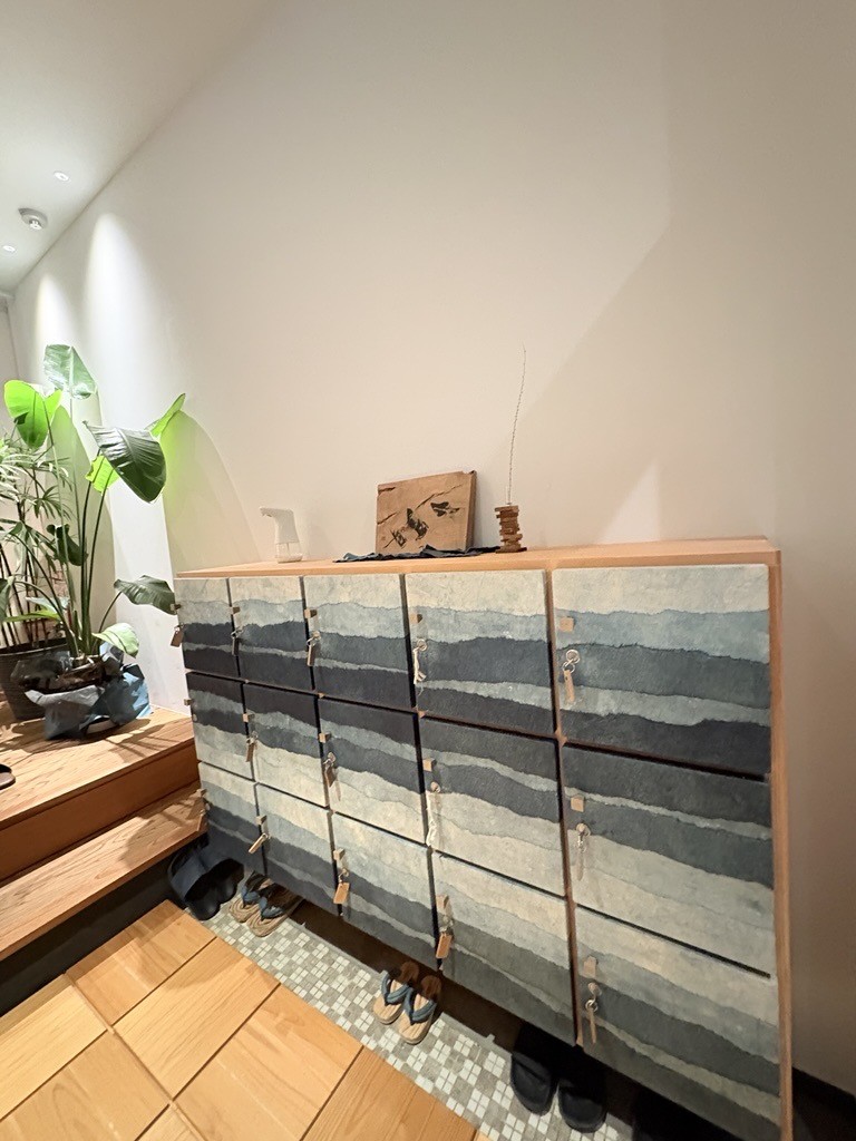 下駄箱の扉には和紙が丁寧に貼ってあり