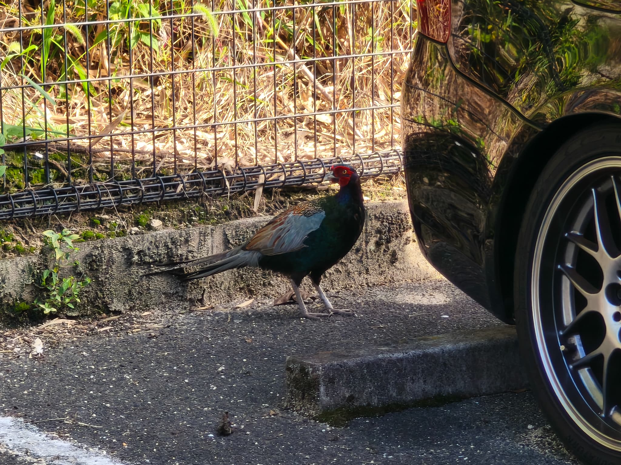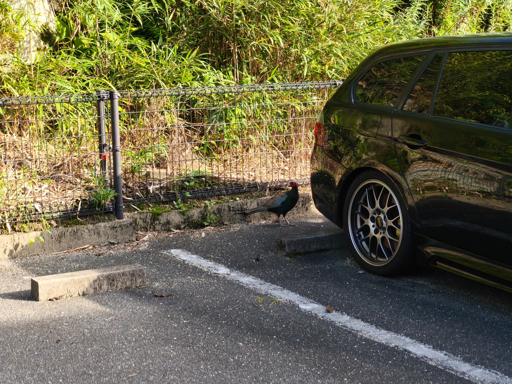 現地を歩いていると、なんと駐車場の横にキジがいるのを見かけました!