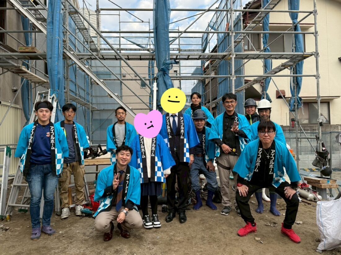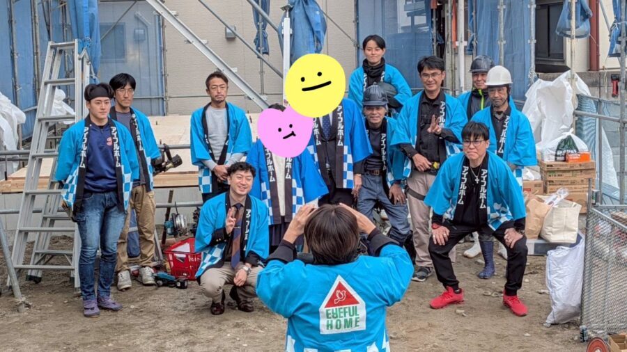 こんな風に大工さんたちとの集合写真と乾杯、、などから始まります。😌