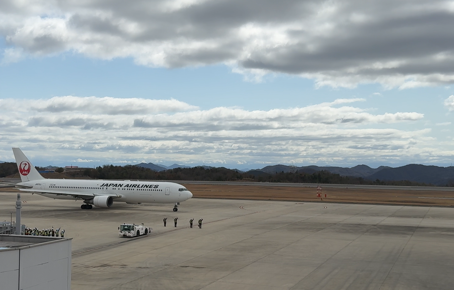広島空港の出発ゲートへ向かう後ろ姿は、