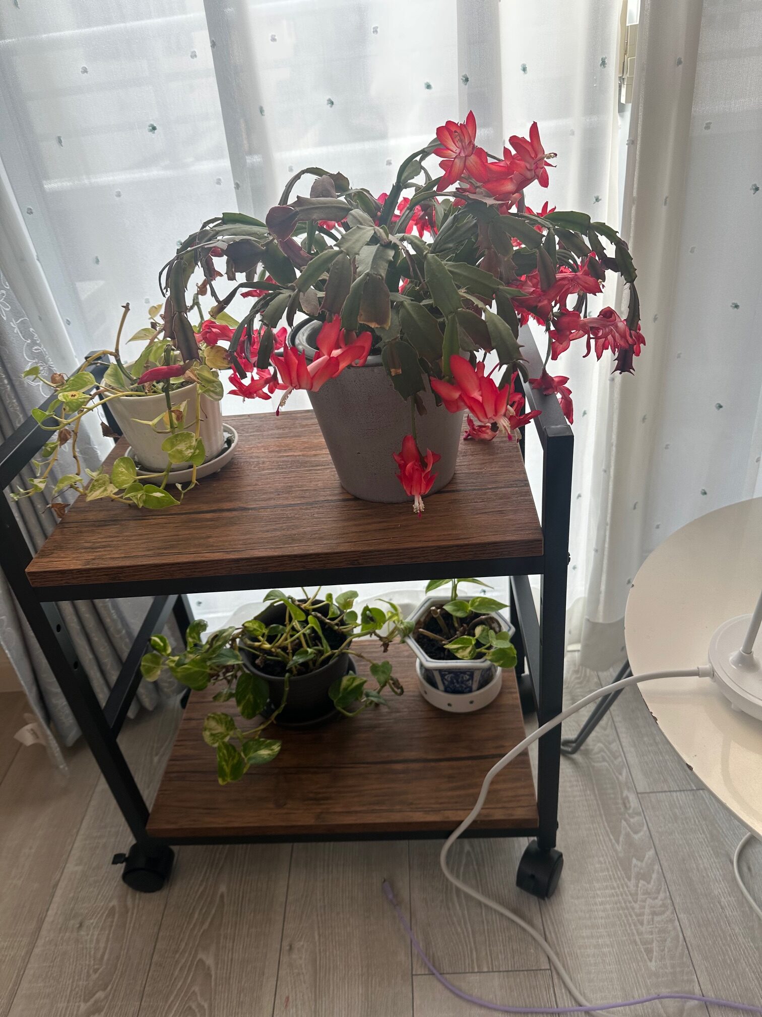 わかりますか?ベッドの横にあるシャコバサボテン。