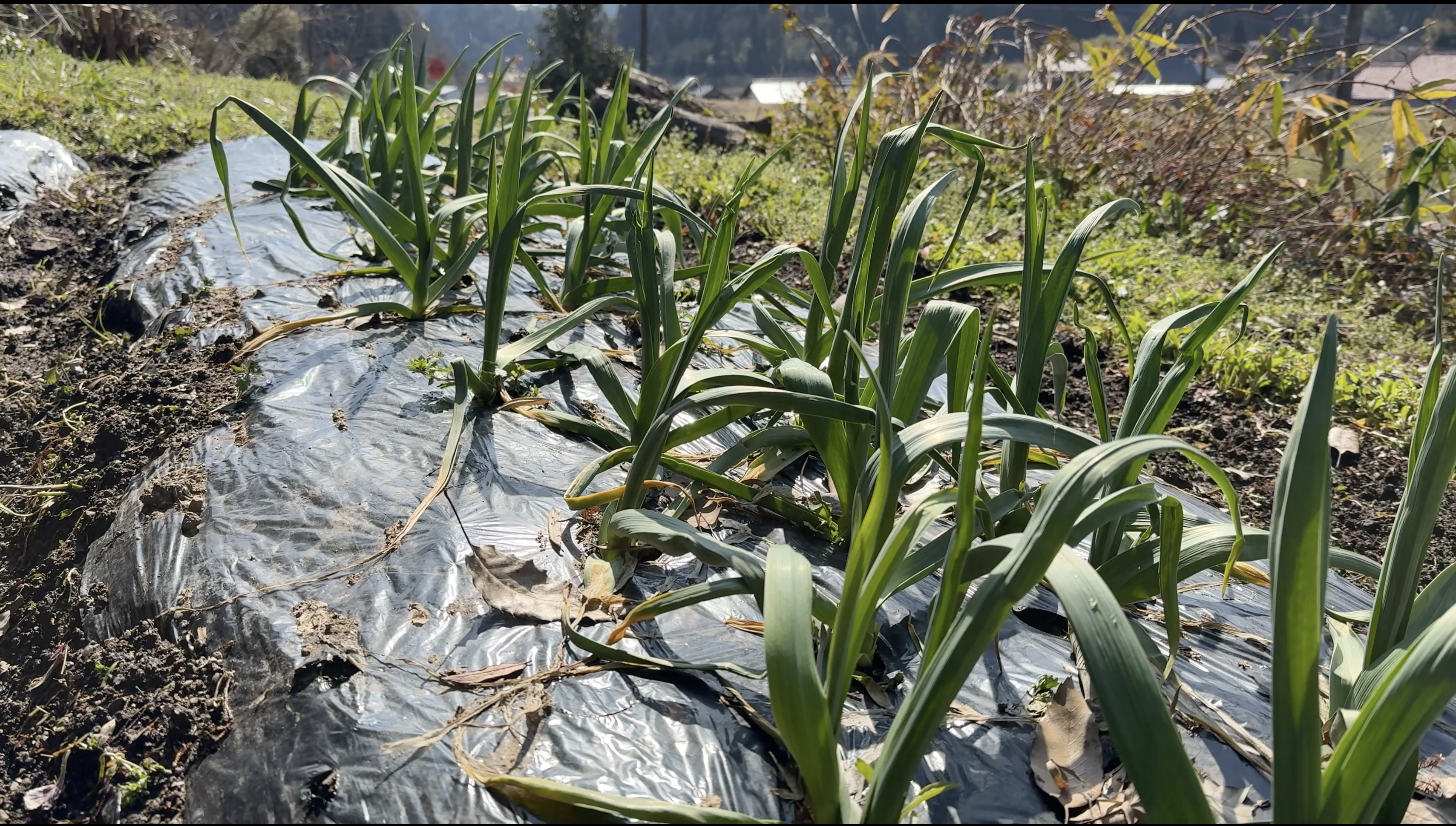 久しぶりにじっくりと眺める畑では、ニンニクたちが想像以上に逞しく成長していました。