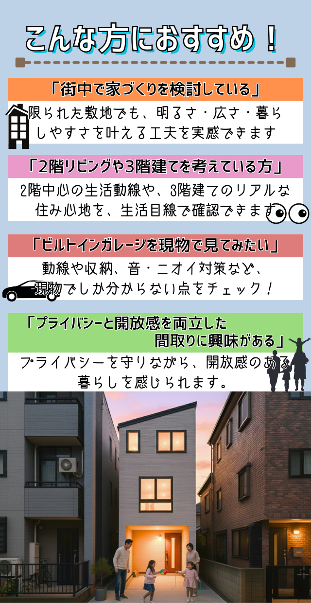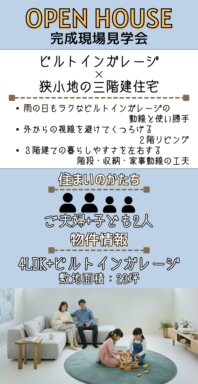 【完成現場見学会】ビルトインガレージ×狭小地の三階建住宅【南区段原】