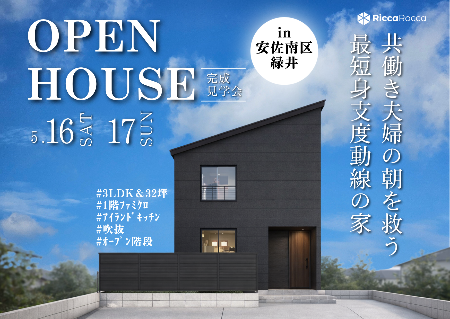 Eventイベント 【安佐南区緑井】共働き夫婦の朝を救う 最短身支度動線の家 3LDK×35坪 見学会 受付中 2026.5.16(土)〜5.17(日) ✬5月16日(土曜日)10:00~16:00 ✬5月17日(日曜日)10:00~16:00 場所:安佐南区緑井 イベント来場予約 下記の情報に御記入の上、【送信】ボタンをクリックしてください。折り返し弊社より御連絡させていただきます。 ※ 半角カナは使用しないでください。 ※ 【必須】は入力必須項目です。 ※ 当日のご予約は、お電話のみのご対応になります。 参加希望イベント名 【安佐南区緑井】共働き夫婦の朝を救う 最短身支度動線の家 3LDK×35坪 お名前 ふりがな 電話番号 メールアドレス ご住所 郵便番号 都道府県 選択してください北海道青森県岩手県宮城県秋田県山形県福島県茨城県栃木県群馬県埼玉県千葉県東京都神奈川県新潟県富山県石川県福井県山梨県長野県岐阜県静岡県愛知県三重県滋賀県京都府大阪府兵庫県奈良県和歌山県鳥取県島根県岡山県広島県山口県徳島県香川県愛媛県高知県福岡県佐賀県長崎県熊本県大分県宮崎県鹿児島県沖縄県 市区町村番地建物 お問い合わせ内容 第1希望日 来場時間を選択 第2希望日 来場時間を選択 第3希望日 来場時間を選択 ご参加人数 大人 1人2人3人4人5人以上 11歳以下 0人1人2人3人4人5人以上 6歳以下 0人1人2人3人4人5人以上 3歳以下 0人1人2人3人4人5人以上 当社の個人情報保護方針について、ご同意の上、確認画面へお進みください。 同意する Japan その他のイベント 【広島店】子育て家族のための平屋勉強会 その他 受付中 2026/4/18(土)〜4/30(木) 【安芸区矢野西】人気の規格住宅(Lodina)の完成現場見学会 見学会 終了 2026/4/4(土)〜4/5(日) 【廿日市市】規格住宅×勾配天井のある平屋×4LDK27坪の完成現場見学会 見学会 終了 2026/3/7(土)〜3/8(日) BACK TO LIST HOME イベント 【安佐南区緑井】共働き夫婦の朝を救う 最短身支度動線の家 3LDK×35坪
